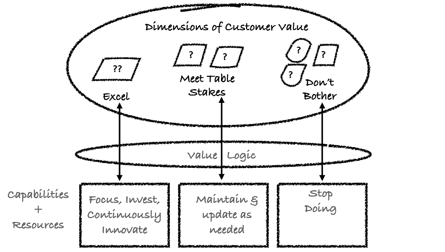 Summary: The ‘How’ component of the Business Model View is the system of Capabilities + Resources that a firm uses to create Customer and Organization Value. ‘How’ is first described generically using the Value Logic typology. From there, ‘How’ is designed in the context of the firm’s Business Model by identifying the specific Capabilities and Resources needed to deliver those Dimensions of Customer Value where the firm chooses to Excel and those where it chooses to meet Table Stakes.