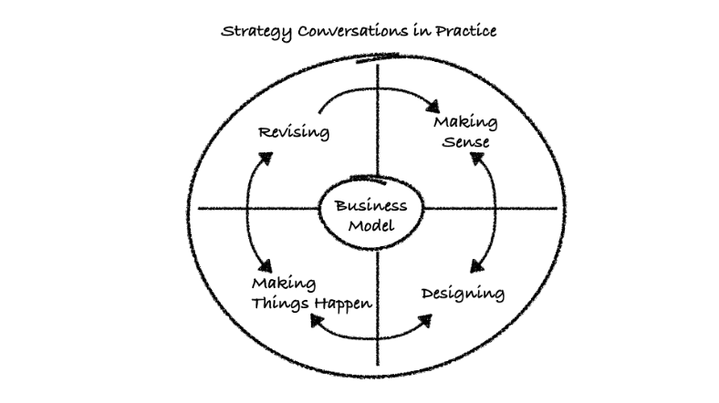 So, what’s the alternative? In SCIP, I argue that strategy is a focused, coherent and integrated set of Customer and Organization Value Creation choices that are continuously reconfigured through a learning loop of four distinct but interconnected, iterative, and reflective Strategy Conversations. Revising Strategy Conversations are the fourth stage in this loop. The other stages are here, here and here.